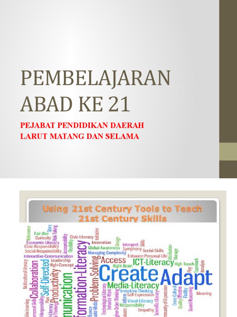Nov 23 2016 Kesimpulannya keberhasilan kompetensi dan Kemahiran Abad Ke-21 murid tidak tertakluk dan tidak terhad dalam bilik darjah sahaja samada bilik darjah mempunyai kemudahan ICT yang baik mahupun tidak. Apr 20 2016 Cabaran pembelajaran abad ke-21. Penggunaan sumber sokongan teknologi dan maklumat ketika PdP.