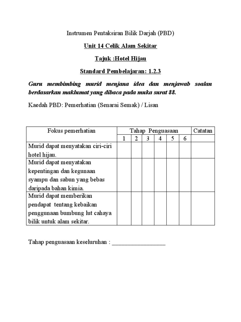 Oleh itu kemahiran guru prasekolah dalam melaksanakan pentaksiran dan penilaian amat membantu dalam mengenalpasti tahap. 15 Contoh Instrumen Pentaksiran Bilik. Panduan Pelaksanaan Pentaksiran Bilik Darjah PBD ini mengandungi 98 halaman bercetak yang memuatkan pelbagai info mengenai PBD.