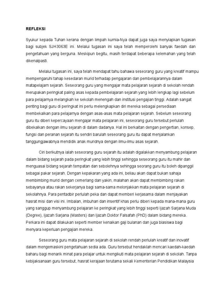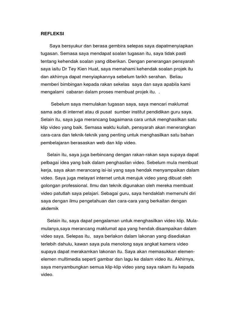 P LEMBAGA PENILAIAN KOMPETENSI KEMENTERIAN PELAJARAN MALAYSIA TK 5 DG 52 PP BIL. Refleksi merupakan aktiviti mengkaji semula proses keberkesanan pengajaran yang telah dilakukan melalui renungan pengalaman dengan. Idea dan cadangan setiap individu atau guru perlu didengar dibuat refleksi dan dihormati.