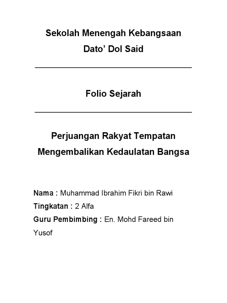 Folio Sejarah Tahun 5 Perjuangan Tokoh Tempatan Latihan Sejarah Tahun 5 Perjuangan Tokoh Tempatan