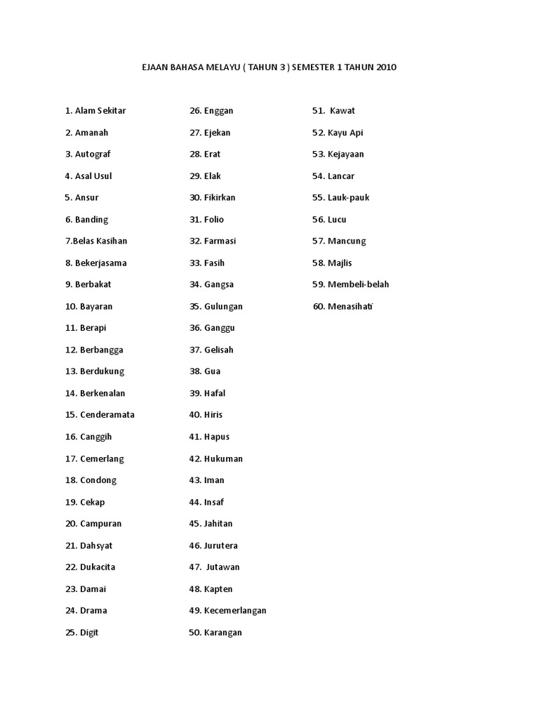 Kata Arah 3. Tanpa menguasai ejaan dan tanda baca murid tidak mampu menulis karangan dengan baik dan berkesan untuk pembaca. Jan 08 2013 Senarai Ejaan Spelling Lists Good day to you.