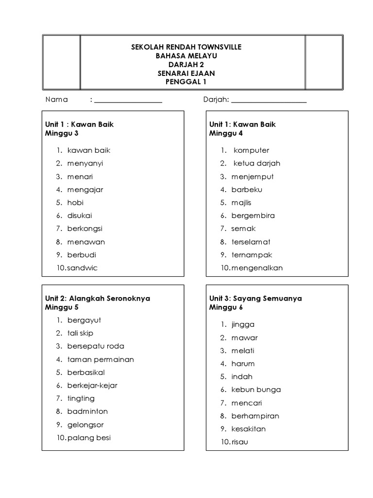 The spelling lists have been given to your sons respectively. This entry was posted in Darjah 1 Darjah 3 Darjah 4 Darjah 5 Ejaan. 10000 keputusan untuk cari kata darjah 2 bahasa melayu.
