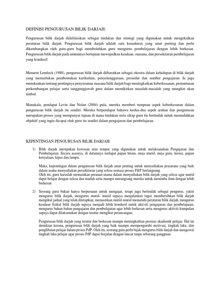 Apakah Definisi Pengurusan Bilik Darjah Docx