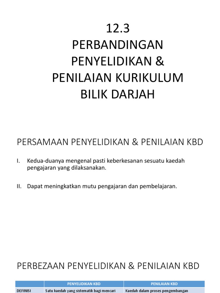 Perbezaan Penyelidikan Dan Penilaian Kurikulum Bilik Darjah