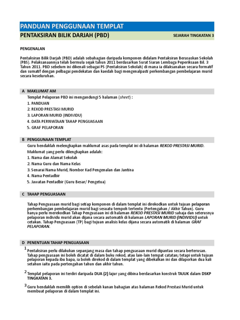 Panduan Penggunaan Templat Pentaksiran Bilik Darjah Pbd