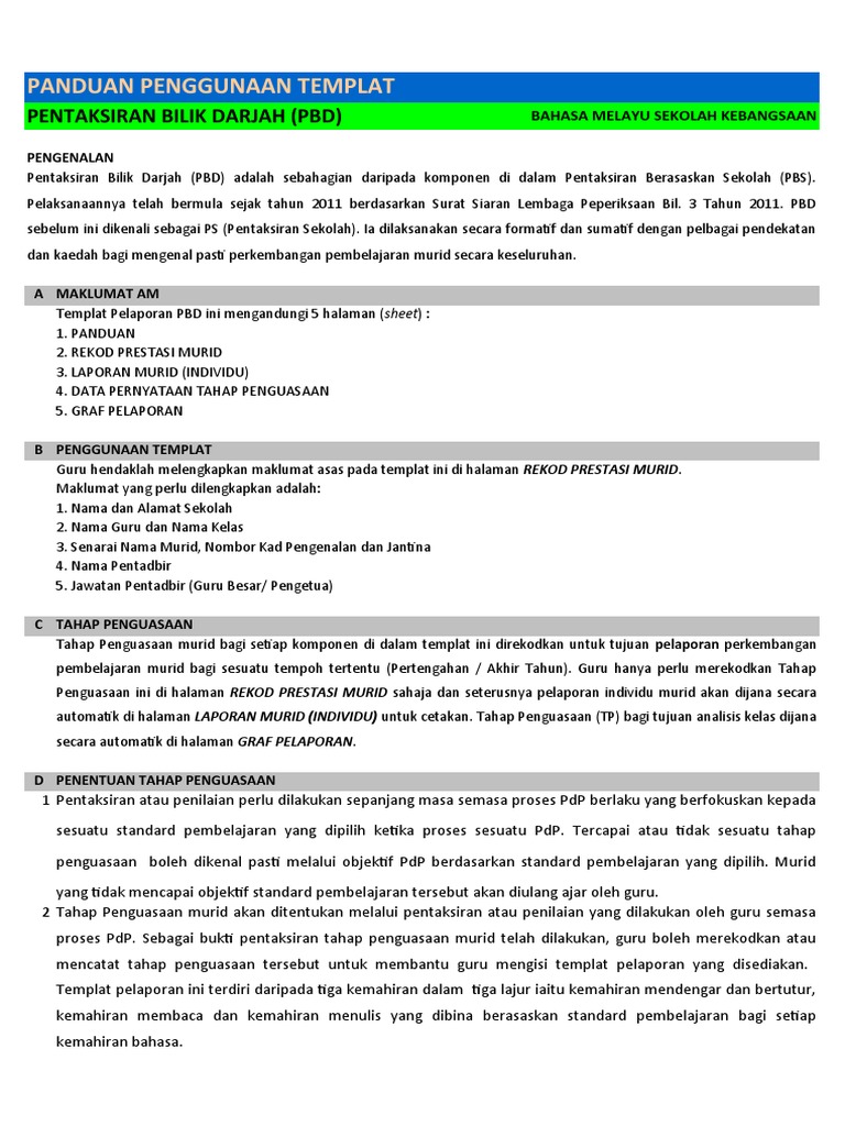 Dapatkan Google Workspace for Education. PENTAKSIRAN BILIK DARJAH PBD BAGI MURID TAHAP I 10 Tujuan Garis panduan ini bertujuan untuk memberi penjelasan tentang kaedah pelaksanaan Pentaksiran Bilik Darjah PBD seiring dengan pemansuhan amalan peperiksaan pertengahan tahun dan akhir tahun bagi murid Tahap I di semua sekolah rendah Kementerian Pendidikan Malaysia. Para pelajar secara langsung akan terus menilai guru yang akan mengajar mereka.